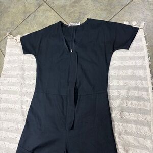 ROUCHA - JON V-NECK CURVED NECK CANVAS JUMPSUIT SZ A MORDERN CITY UTILITIES