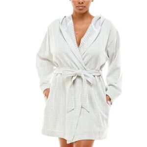 ROUDELAIN WOMENS XLARGE COZY ROBE DOLMAN-SLEEVE HOODED SHORT GREY STRIPE NEW! MSRP $58