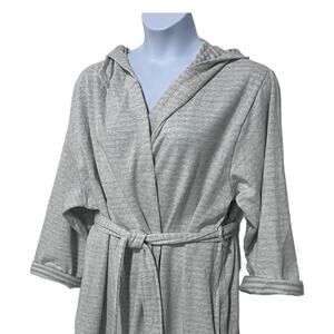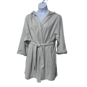 ROUDELAIN WOMENS XLARGE COZY ROBE DOLMAN-SLEEVE HOODED SHORT GREY STRIPE NEW!