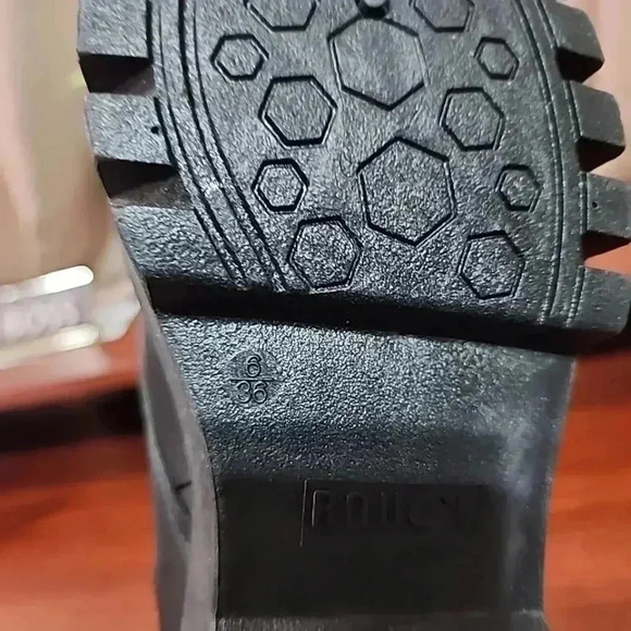 Rouge Combat Grunge Emo Black Platform Boots. Brand new in the box. Size 6.5. Has a small studded pocket on the side. Really cute. Does have a tiny scratch ( shown in photo).