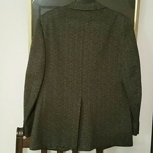Spectacular metallic looking jacket. Approximate measurements: Armpit - armpit 22 inches (across ). Length 29 1/2 inches. 31 1/2 inches from folded collar to hem. 25 inches measured from shoulder seam to end of arm.