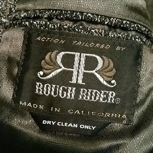 Action tailored by Rough Rider. Made in California. Dry clean only. Please note in photos where the lining is detached from its area...under the arm.