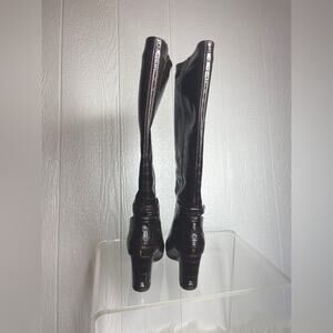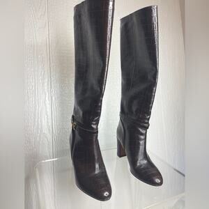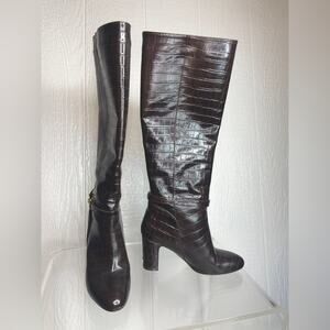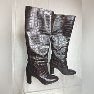 ROUJE PARIS Loana Croco Chocolat Heeled Riding Boots 37