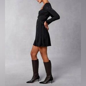 Rouje Nancia dress in black, US size 6/FR size 38 (fits true to size). Sold out. This dress features delicate, elegant all-over floral jacquard; frog knot detail at bust; and a flattering mini-length fit. It is in flawless, brand new with tags condition. Care instructions: wash on delicate cycle in cold water and hang to dry, or dry clean.