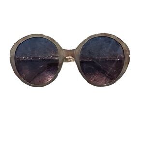 ROUND FRAME OVERSIZED SUNGLASSES WITH GOLD ON ARMS OF GLASSES 0112