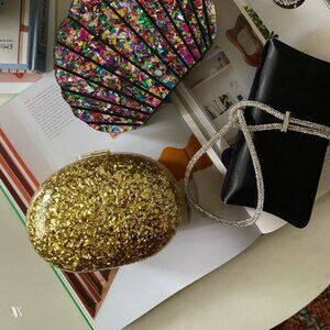 Our Glitter gold purse is for every occasion! It comes with TWO types of chains for any look. Twist the top to open clutch.