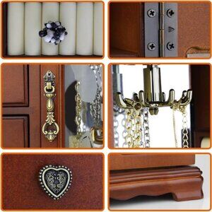 🧿💝Internal multifunctional design:Removable square drawer on the left, large space storage (can store necklaces, bracelets, earrings, earpins, hairpins, watches and other jewelry accessories). The right side is equipped with stereo lenses, making it easier to choose jewelry to match your own clothes; the top is equipped with necklace carousel horse, which can hang a variety of jewelry; and a multi-layer velvet ring storage device.