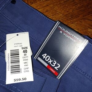 ROUNDTREE & YORKE CARGO PANTS MENS CLASSIC FIT STRETCH blue SIZE 40X32 NWT.