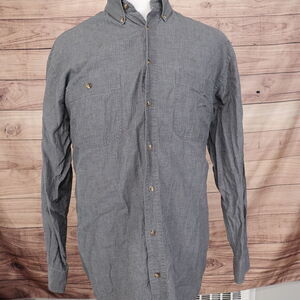 ROUNDTREE & YORKE HERRINGBONE GREY LONG SLEEVE BUTTON DOWN SHIRT MENS SIZE L