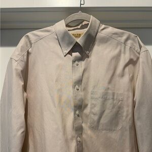 ROUNDTREE & YORKE Light Tan Striped Casual Button Down Shirt Size 16 1/2 34