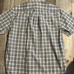 Excellent used condition men’s short sleeve— six button— 100% cotton shirt. Made by Roundtree and Yorke- size Medium- all buttons, labels, seams and stitching are intact and then missing. Comes from clean, smoke and pet free home. No holes, tears or stains.