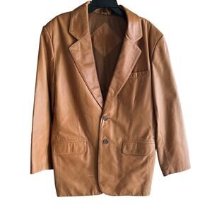 ROUNDTREE & YORKE True Vintage camel Tan Brown Leather blazer Studio 51 sizeL