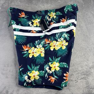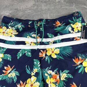 ROUNDTREEE & YORKE‎ BIG MAN Swim Trunks 1XB Blue Floral Hawaiian Shorts New