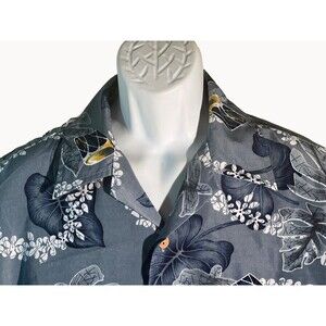 ROUNDY BAY Men's Short Sleeve Button Floral Shirt Gray Large