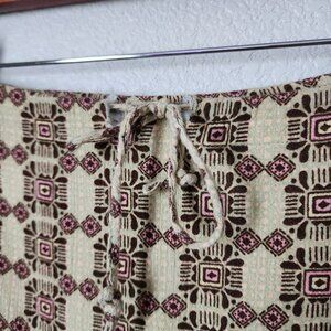 ROUTE 66 Boho Tiered Midi Skirt Geometric Print Brown Pink Cotton Drawstring M