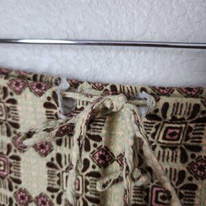 Up for consideration is a preowned ROUTE 66 Boho Tiered Midi Skirt featuring a geometric print in shades of brown, pink, and beige. This garment is in great condition with lots of life left, fabric at drawstring holes has significant wear as shown. Size Medium.