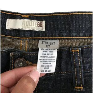 ROUTE 66 men's dark wash straight leg jeans in size 42X30. Durable and stylish, these jeans are made from pure cotton for ultimate comfort and longevity.