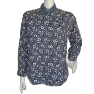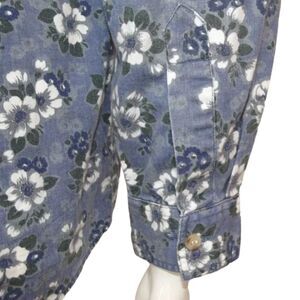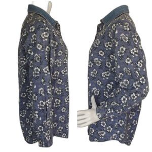 ROUTE 66 Denim Shirt-Jacket, S, Blue Floral, Accent collar, Long sleeve, Buttons
