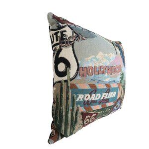 ROUTE 66 Tapestry Pillow Hollywood Throw 16 x 16 x 8 Living Room Bedroom Decor