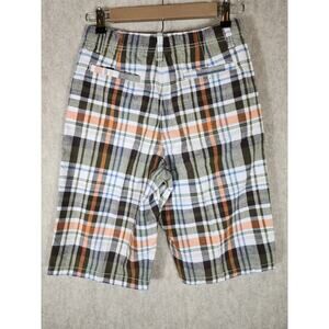 ROUTE 66 Women's Brown Orange Plaid Bermuda Punk Casual Shorts SZ (28" Waist)