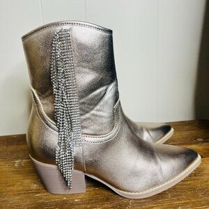 ROWAN Metallic Champagne Rhinestone Fringe Western Booties Rodeo Concert 7.5