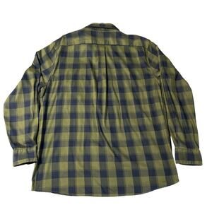 ROWM Casual Plaid Shirt Large Button Front Green Blue Lightweight Long Sleeve
