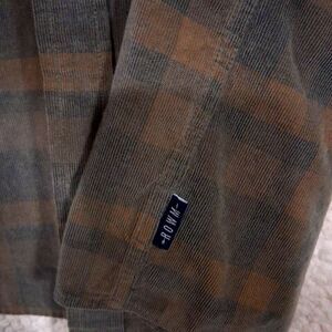 ROWM Men's Medium Shirt Button Down Long Sleeve 100% Cotton Corduroy Brown Plaid