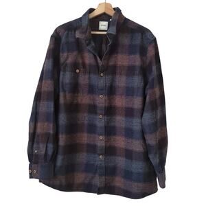 ROWM Plaid Button Down Flannel Shirt Mens XL Navy Blue Brown Check Cotton EUC