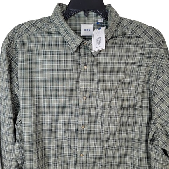 ROWM Shirt 2XB Snap Closure Long Sleeve Plaid Check Collar New NWT Green Big