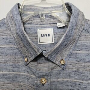 ROWN Men's Lg Long Sleeve Button Down Collar Cotton Blend Shirt Blue Heathered