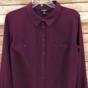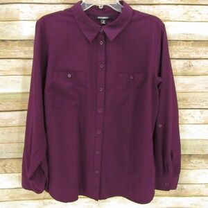 ROX & ALI Deep Grape Button Front Blouse 1X
