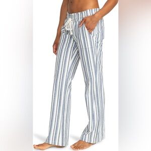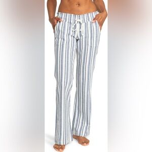 A braided drawstring adds to the beachy feel of linen-kissed pants equipped with handy pockets.