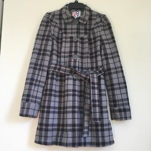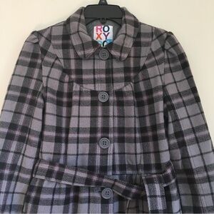 ROXY 90's Gray Plaid Button Up Belted Pea Coat