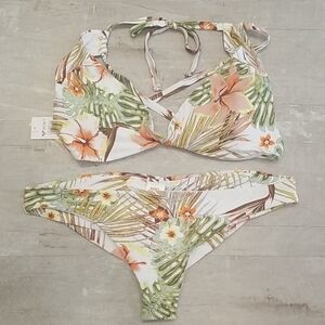 💕ROXY💕 Beach Classics Bikini Set ~ Tropical Floral Bright White Herbier XL NWT