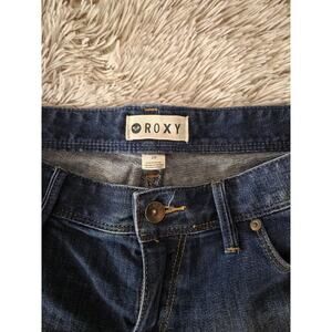The product is a pair of ROXY Blue DENIM Boho Aztec Pink Purple Embroidered Cutoff Jean Shorts for women in size 30. These shorts feature a unique Aztec pattern with embroidery, a low rise, and a 3" inseam. They are designed for a festival occasion with a boho style and are embellished with fringe and distressed detailing. The denim material is machine washable, and the shorts also include pockets for added convenience. Made in Vietnam by the brand ROXY, these jean shorts are a fashionable and versatile addition to any woman's wardrobe.