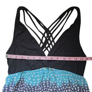 ROXY Colorful Mini Dress. Size Large. V neckline. Cross strappy back. Measurements in photos. Lightly used and in great condition.