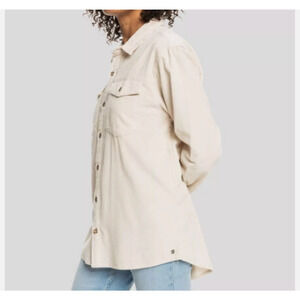 ROXY Corduroy Shacket Long Sleeve Khaki Tan Ribbed Button Sweater Size XS