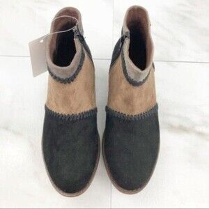 Roxy Devlin Bootie New with tags. Upper: Faux suede Upper: Patchwork details with whip stitch and metal ROXY plaque Closure: Medial zip closure Insole: Canvas lined shaft and footbed with ROXY label Outsole: Leather-wrap flexible TPR unit outsole