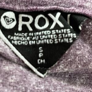 This stylish tee from Roxy is perfect for your warm weather wardrobe. It is a heather grape color with the Roxy logo on the front bottom. Excellent smoke free condition.