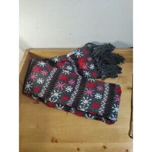 ROXY KNIT YARN ARGYLE Snowflake SCARF ACRYLIC Red Pink BLACK GREY WHITE ~6x56"