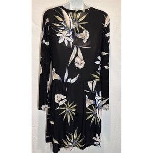 ROXY Lombok Waterfall True Black Delicate Flowers LONG SLEEVE 100% viscose Sz M