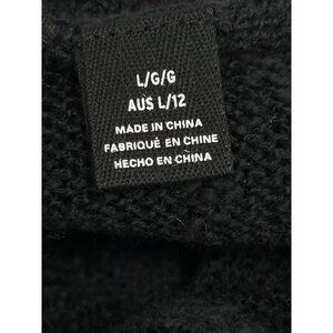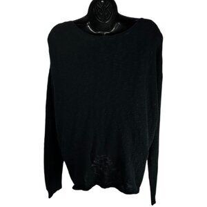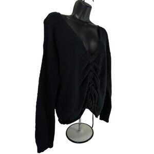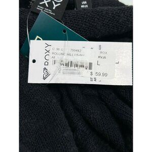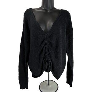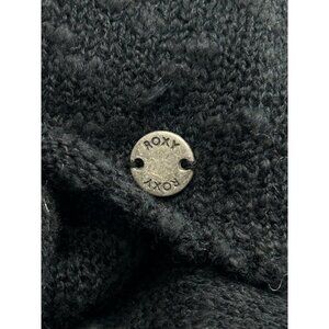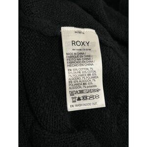 ROXY Rolling Hills Sweater Sz L Black Ruched Front Tie Knit Cotton Nylon Blend