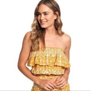 ROXY Ruffle Collier Tube Top in Inca Gold Desert Size XS
