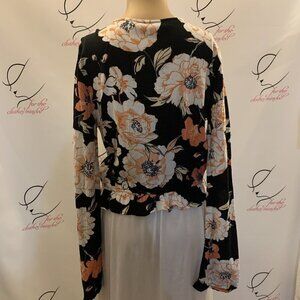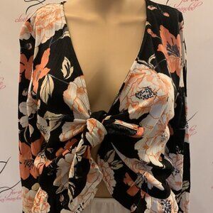 ROXY Size SMALL. Ruffled Tie Front Long Sleeve NWT Top. Ruffled at Hem. B80