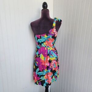 ROXY TROPICAL FLORAL Colorful MERRY VALE ONE SHOULDER Dress Stretch Sz S