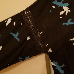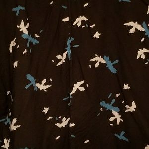 Black background, blue and white bird pattern