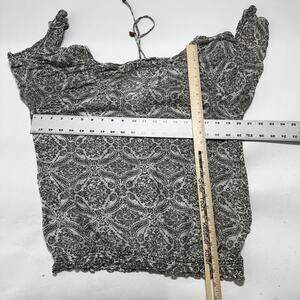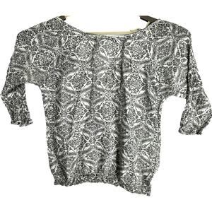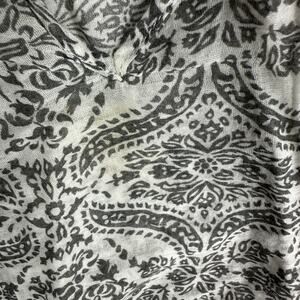 ROXY Top Size L Gray White Paisley 100% Cotton Sheer Scoop Neck Boho Chic STAIN