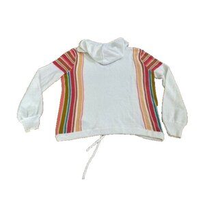 ROXY V neck Pullover Sweater Striped Medium Hood Oversized Beach Boho Turning Ou