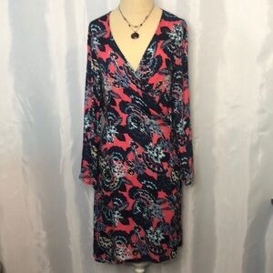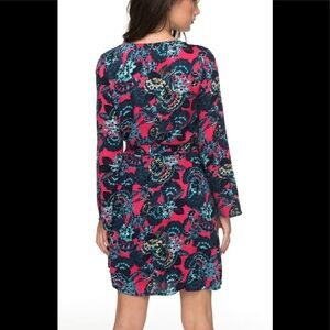 ROXY WOMENS FLORAL PRINT PINK/BLUE LONG SLEEVE WRAP DRESS SIZE S