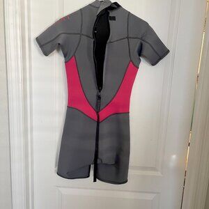 Spring suit, worn twice in freshwater for spring waterskiing, never worn in salt water. Condition is like new. Gray with pink details.